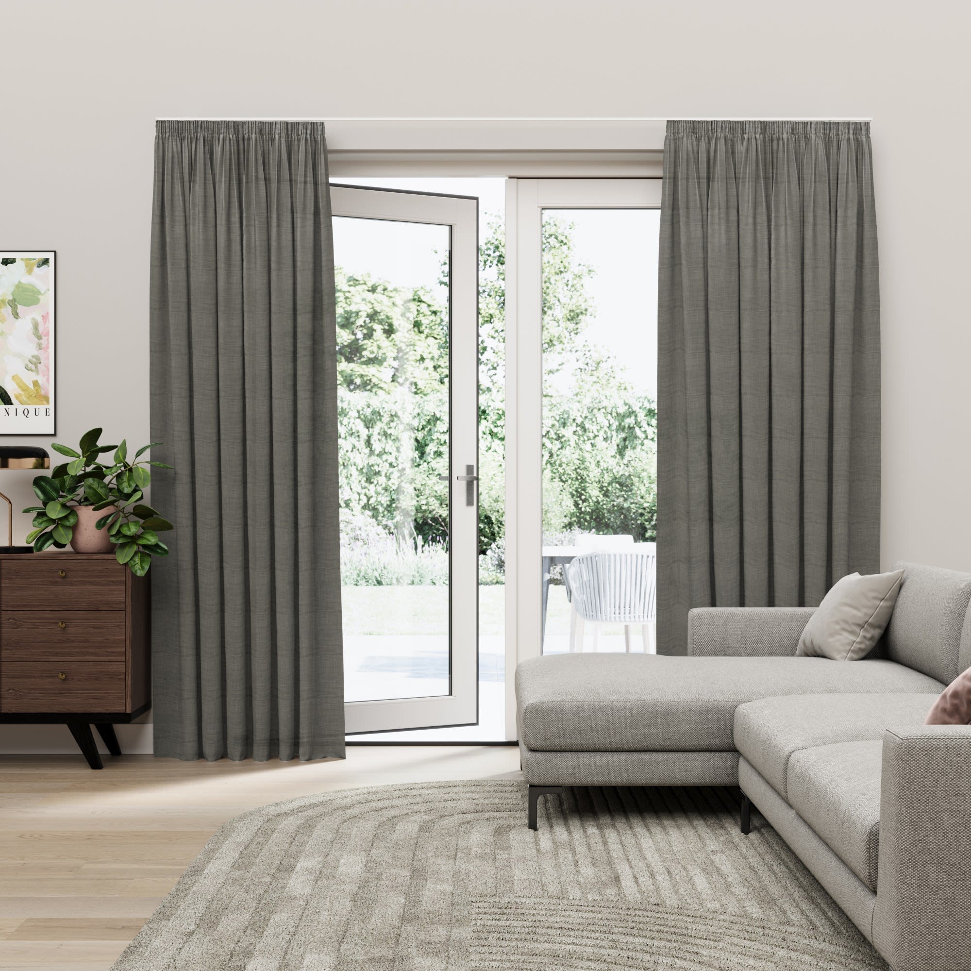 Stell dir vor, wie der Vorhang Cesar in Graubeige deinem Wohnzimmer oder Schlafzimmer eine warme, einladende Atmosphäre verleiht. Die raumhohe Länge sorgt dafür, dass der Stoff in einem Stück hängt, was für ein harmonisches Gesamtbild sorgt.