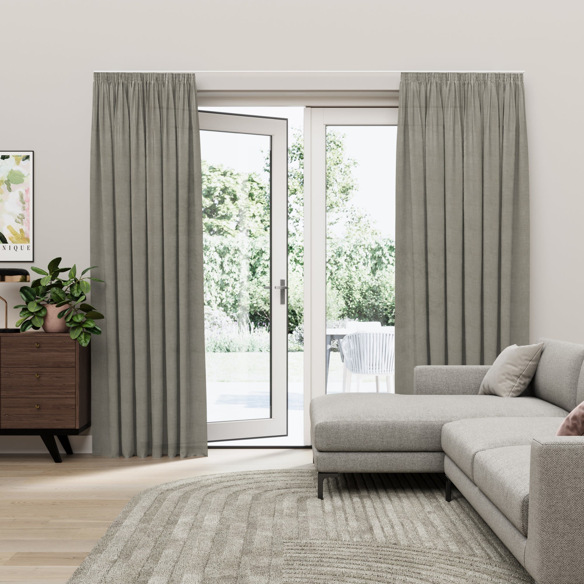 Stell dir vor, wie der Vorhang Cesar in Khaki deinem Wohnzimmer oder Schlafzimmer eine natürliche Wärme verleiht. Die raumhohe Länge sorgt dafür, dass der Stoff in einem Stück hängt, was für ein harmonisches Gesamtbild sorgt.